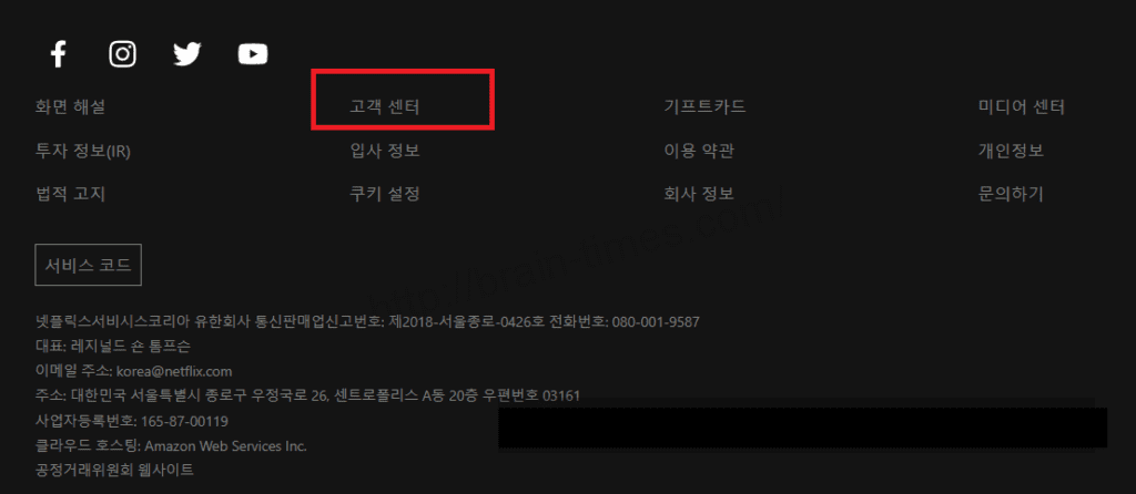 화면을 끝까지 내리신 후 [고객센터]를 클릭해주세요.