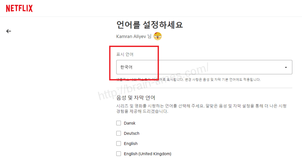 넷플릭스로 돌아가시면 한국어로 표시되는 것을 확인하실 수 있습니다.