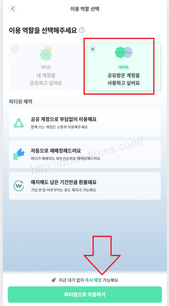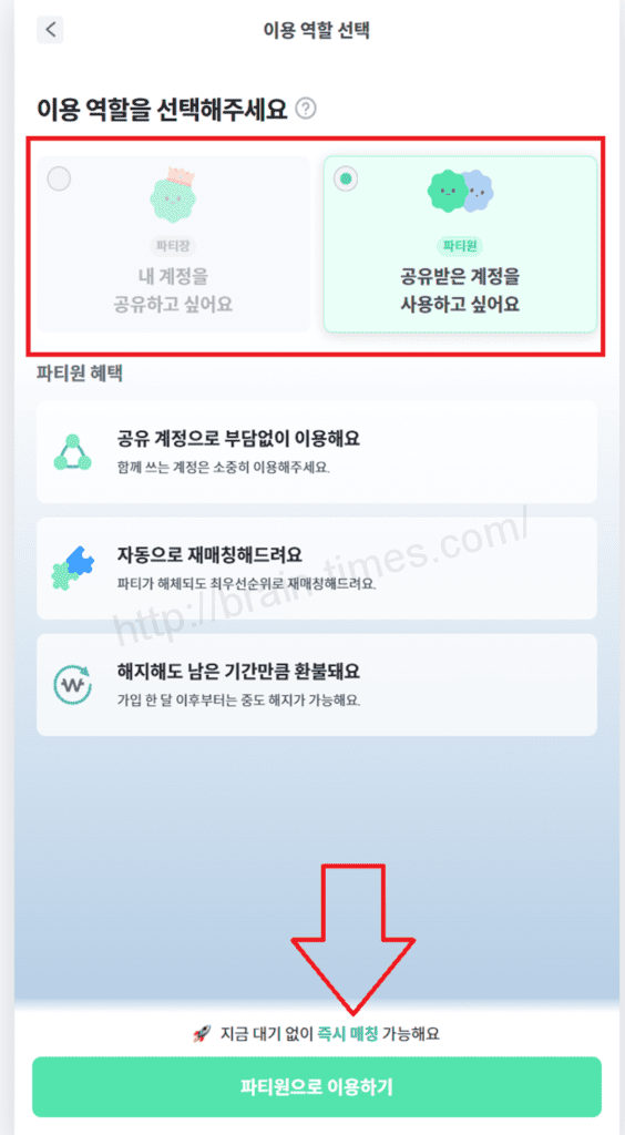 이 과정에서는 파티장으로 가입할지, 파티원으로 가입할지를 선택해 주십시오.