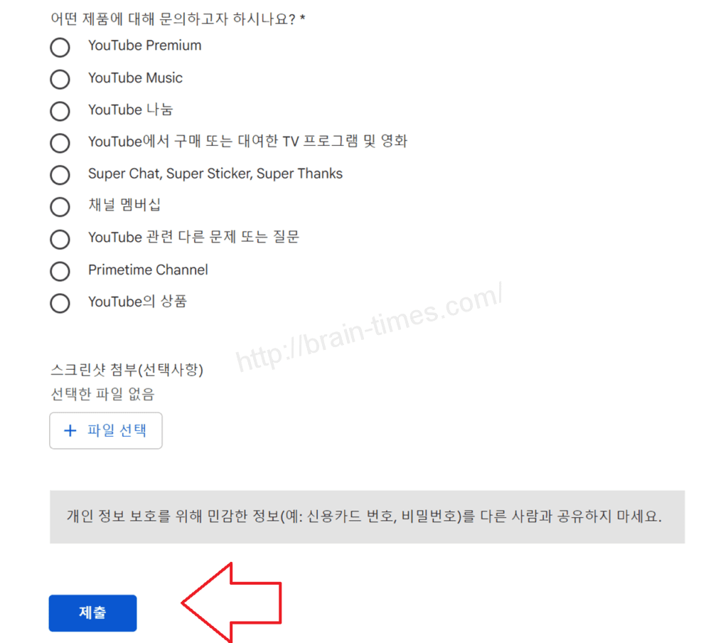 채널 멤버십을 선택하시고 [제출] 버튼을 눌러 주세요.
